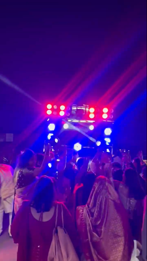 Modern DJ setup with high-quality sound and lighting. The DJ plays Bollywood, Punjabi, EDM, and party mixes to boost the event’s energy.